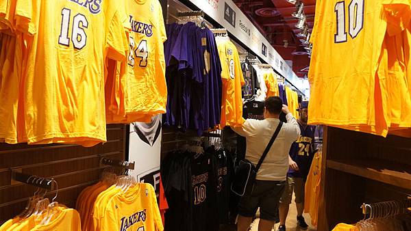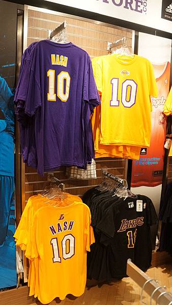 由於有答應佳霖幫他買件Nash的衣服,所以進場後我們就直奔球場內的商店,這是我第一次逛球隊商店,照理說應該每支職業球隊的主場裡面應該都有才對,至少我這次去的四個球場都有自己的商店,我想應該不會有哪個老闆不想賺這種錢吧;不過我比較好奇的是像Staples Center同時是湖人和快艇的主場,難不成店員要每天把店裡的商品反覆上架下架嗎?我想也許是吧,至少這次逛的過程中完全只有看到湖人的商品,跟快艇有關的商品我一件也沒看到。