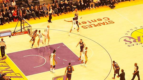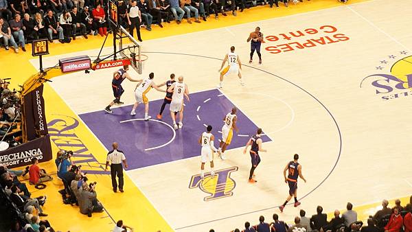 雖然很幹,但是我還是坐在場內把比賽看完了,這時候應該慶幸我進場的時候沒有買任何食物或飲料,不然你可能會看到一杯雪碧或什麼的從Staples Center的第三層看台飛下來,有沒有砸死誰我可就不曉得了;不過我慶幸我沒買食物,老婆顯然不是這麼覺得的,場內這麼吵還幾乎睡了大半場比賽的老婆可能是肚子餓了醒來想跑出去覓食,結果球場內賣吃的商店居然就在她面前一間一間的拉上鐵門,氣得老婆也沒跟我說就直接一個人離開球場去剛剛那間運動餐廳吃飯了,是的,我在觀眾席上氣得半死,根本忘記我們沒吃晚餐這件事!