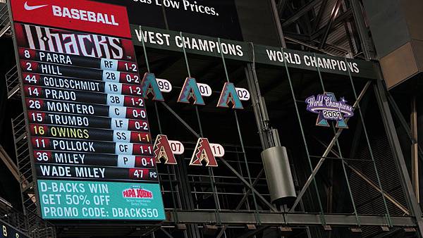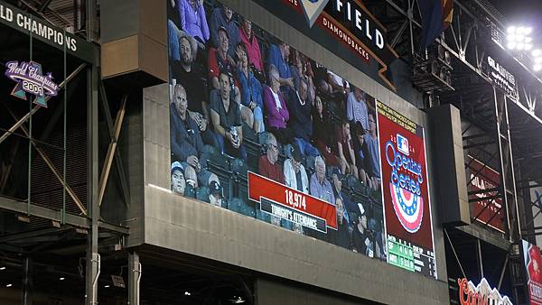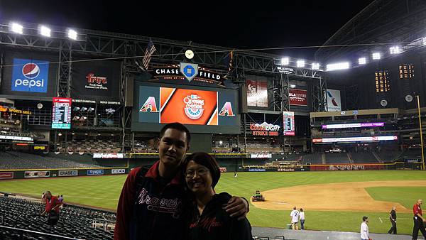 回台灣一段時間以後我才知道,今年小蛇根本全面崩潰,一開季主場就先來個1勝11敗,打成這樣Chase Field不會被拆掉嗎?咦,我們剛好看到贏的那場耶,要不要考慮給我一張季票含食宿,我可以考慮去當吉祥物喔....(被拖走)