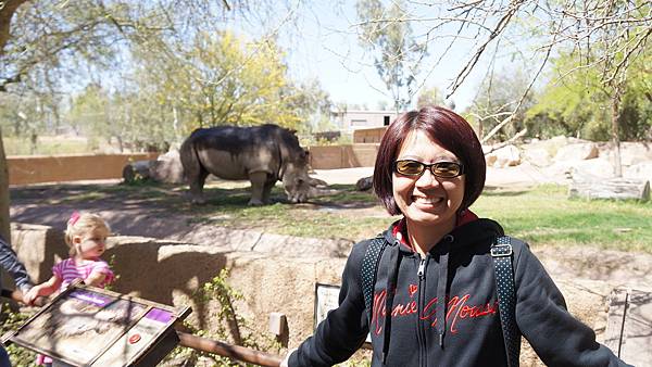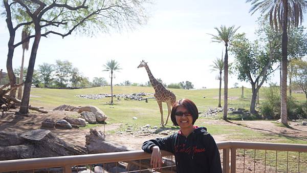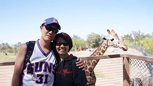 今天我們的第一個行程是鳳凰城動物園,不要笑,這是我研究了很久才決定的行程耶!因為要在鳳凰城看兩場比賽,但兩場比賽的時間都是晚上的關係,表示我們至少要在鳳凰城安排一個白天的行程,但是問題就來了,鳳凰城要去哪玩?這問題超困難的,我拿去問曾經住過鳳凰城的朋友,他也說你問倒我了;後來在翻旅遊書時老婆剛好看到動物園的照片,長頸鹿離遊客好近喔!我老婆最愛的動物大概就是長頸鹿了,這個距離對她來說簡直是致命的吸引力,於是鳳凰城動物園就是我們今天鳳凰城一日遊的首選了。不過每個人聽到我要去動物園,第一個反應都是你幹嘛不去San Diego?啊就不順路啊....